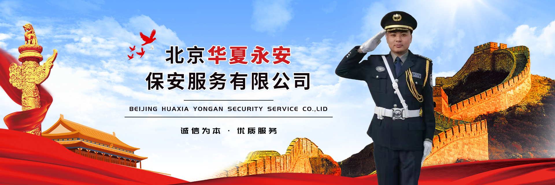 服務(wù)特色:公司始終堅(jiān)持誠信為本、優(yōu)質(zhì)服務(wù)的宗旨,把社會效益放在首位,以維護(hù)首都社會治安,保障客戶安全為己任,以優(yōu)質(zhì)的服務(wù)、良好的形象,以講政治的高度,認(rèn)真履行企業(yè)職責(zé)。經(jīng)過全體員工的不懈努力,凝心聚力,規(guī)范管理,企業(yè)不斷發(fā)展壯大,倍受客戶的高度認(rèn)可和上級領(lǐng)導(dǎo)的好評,在社會上樹立了良好的企業(yè)形象和信譽(yù),凝聚了一支有志向、有朝氣、有創(chuàng)新、有干勁的過硬團(tuán)隊(duì)。通過認(rèn)證強(qiáng)化了品質(zhì)管理,提高了企業(yè)效益,增強(qiáng)了客戶信心,擴(kuò)大了市場份額,提升了企業(yè)形象,奠定了行業(yè)地位。公司部分服務(wù)客戶有:中國城市規(guī)劃設(shè)計(jì)院、中國道教協(xié)會、中央戲曲學(xué)院、北京市統(tǒng)計(jì)局、北京市發(fā)改委、北京市公交集團(tuán)、北京超市發(fā)連鎖服務(wù)、北京市測繪設(shè)計(jì)研究院、北京首佳物業(yè)管理有限公司、北京房修一物業(yè)管理有限公司、道豐物業(yè)管理有限公司、新中物業(yè)管理(中國)管理有限公司北京分公司等合作單位。